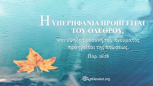 Η υπερηφανία προηγείται του ολέθρου, και υψηλοφροσύνη του πνεύματος προηγείται της πτώσεως.
