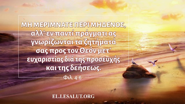Μη μεριμνάτε περί μηδενός, αλλ’ εν παντί πράγματι ας γνωρίζωνται τα ζητήματά σας προς τον Θεόν μετ’ ευχαριστίας διά της προσευχής και της δεήσεως.